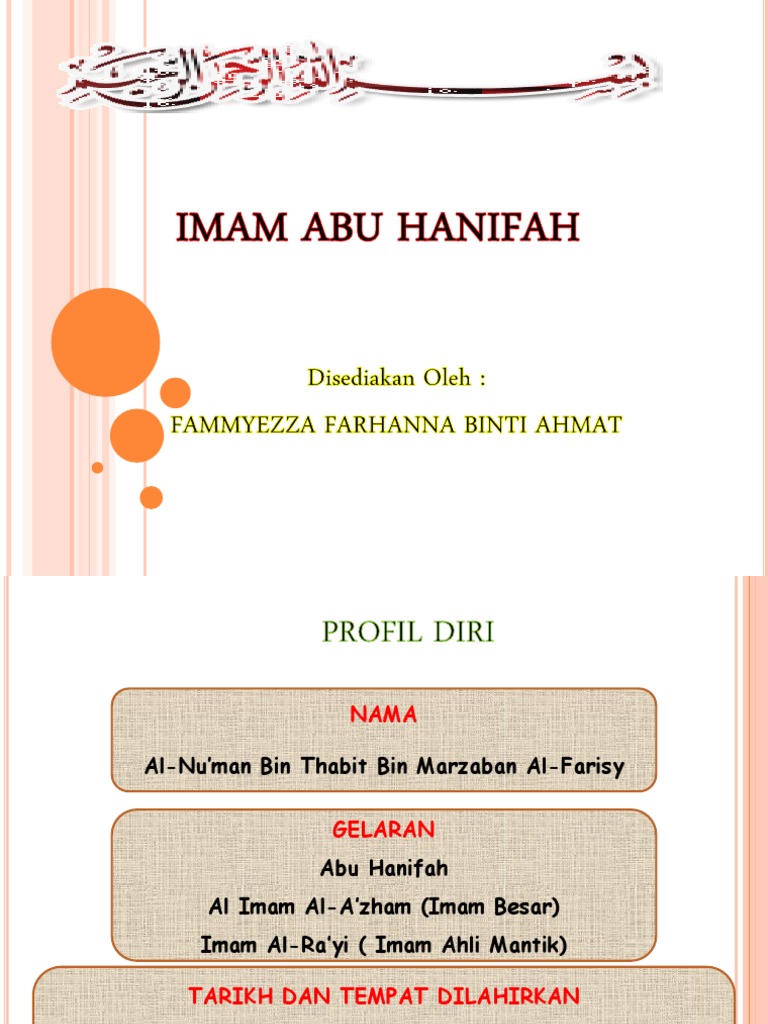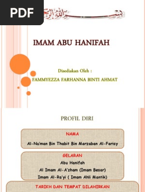 Tahun kemudian timbul niat dalam diriku untuk. Biografi Imam Abu Hanifah Nama lengkap Imam Abu Hanifah adalah Abu Hanifah al-Numan bin Tsabit lahir di Irak pada tahun 80 H699 M pada masa pemerintahan Bani Umayyah yaitu pada masa Abdul Malik bin Marwan1 Beliau diberi julukan Abu Hanifah karena beliau seorang. IMAM ABU HANIFAH 1.